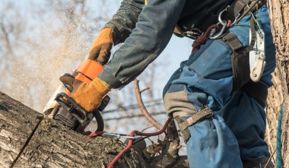 Un élagueur intervient sur les arbres qui nécessitent des tailles, élagage ou abattage: